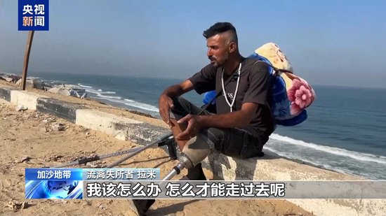 在撤离加沙城的队伍中,有一名拄着拐杖的巴勒斯坦人。他名叫拉米,在以军袭击中失去了左腿。拉米说,为了躲避战火,他过去一天内已经走了十几个小时的路,夜间也只能在沙漠中露宿。现在,他已经不知道怎样才能继续坚持下去。